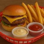 $26Crumb Cauliflower patty, garlic buttered, salted cucumber, tomato relish, onion rings, cos lettuce & avocado ranch on a potato bun.